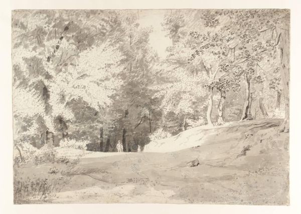 Thomas Gainsborough made this landscape drawing using primarily a brush, with black and white chalk for highlights. The image shows his characteristic feathery style; he even used thinned oil paint to achieve the translucent washes. Look closely, and you can almost feel the dampness of the scene. The thinness of the application is deceptive, however. It gives the impression of spontaneity, yet the artist likely spent hours coaxing the image into being. Gainsborough was known for his portraits, but landscape was his passion. His approach was deeply rooted in the careful observation of nature, as well as his deep understanding of the materials at hand. Considering the social context, the work reflects a romantic view of nature, far removed from the realities of rural labor and class, but instead offering an idealized vision, and a picturesque aesthetic. Next time you see a landscape drawing, remember the artist's patient work and the way materials shape the image. This challenges the distinction between art and craft.