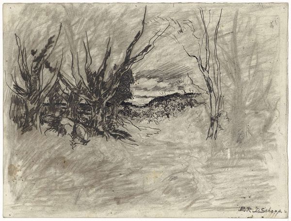 Maria Johanna Goemans made this drawing, Kale dennenstammen op glooiend terrein, with pencil, and the quick, loose marks tell us that Goemans wasn’t trying to capture a specific scene but more an impression, a feeling of being in this landscape. Look at the texture of the paper itself and how it interacts with the graphite, creating a sense of depth and atmosphere. The trunks of the trees are rendered with simple, vertical strokes. There’s something really immediate and honest about the way the artist has approached the subject, almost like she’s inviting us to collaborate in completing the image. I keep thinking about Morandi and his drawings of bottles, there is something similar in the way Goemans abstracts the natural world, reducing the trees and hillside into rhythmic marks. Ultimately this piece is about openness and ambiguity, inviting us to pause, and to bring our own experiences to the act of looking.