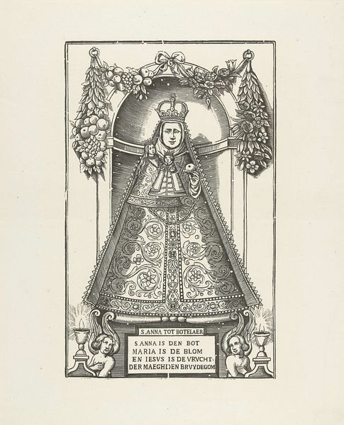 Editor: This is an engraving from 1898 by Giuseppe Barberis, titled *Statua Di San Nicola Nella Basilica Omonima*. The detail is just incredible. I am struck by how ornate and almost theatrical the presentation is of this Saint Nicholas statue. What's your take? Curator: What immediately catches my attention is the intricate representation of power dynamics through religious iconography. The halos, the staff, and the opulent robes are all carefully constructed symbols of authority and sanctity. Consider the historical context: late 19th century, a period marked by social inequalities. Editor: I see what you mean. The opulence feels... almost intentionally distanced from everyday life? Curator: Exactly. Now, think about who Saint Nicholas represents: traditionally, a figure of generosity, particularly towards children and the poor. How does this portrayal of wealth and power sit alongside that tradition? Doesn't this image seem at odds with a figure known for humility and giving? Editor: It really does make you wonder about the message they were trying to send. Was it about inspiring awe or something else? Curator: And for whom was the image created? What socio-economic class? How might they have viewed this display of religious grandeur, knowing that the Church’s vast wealth stood in stark contrast to their daily struggles? These images were rarely neutral; they reinforced particular ideological perspectives. Editor: That’s a fascinating point. So, beyond the immediate aesthetic impression, we need to consider whose interests this kind of imagery served. Curator: Precisely. And by interrogating those interests, we can begin to understand how images like this perpetuate or challenge existing power structures. Editor: This has really opened my eyes. It's more than just a portrait, it’s a cultural statement, wouldn’t you agree? Curator: Absolutely. Looking beneath the surface helps us understand the complexities and the often-unequal dialogues happening within a society.