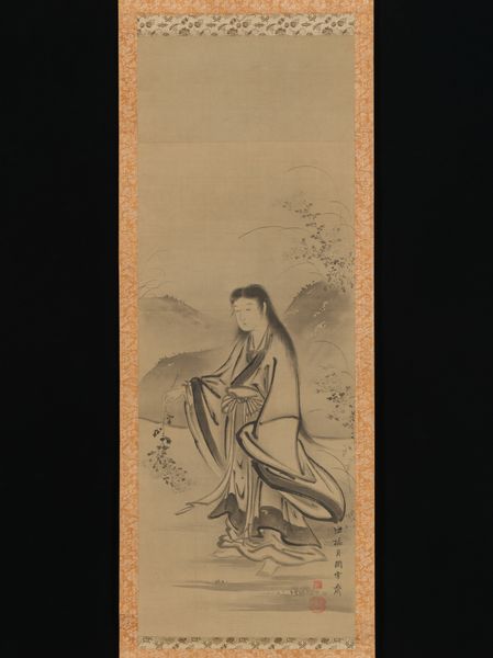 Editor: We’re looking at “Illustration for The Ural Tales” by Vyacheslav Nazaruk, a watercolor painting. I find its detailed and representational style really captivating. The lighting almost creates a stage, drawing attention to the figure. What do you see in this piece? Curator: Intriguing. Note the artist's sophisticated manipulation of pictorial space. The strategic positioning of elements like the pink blooms creates a delicate balance, enhancing depth within the two-dimensional plane. The contrasting warm and cool tones do a lot to push the boundaries between foreground and background. What's your sense of how line functions within the work? Editor: The lines define the shapes but also soften the edges; I think it adds to the folk-art feel. The woman in the foreground feels very grounded and tangible, while the shapes behind her are a little ambiguous and mysterious, with a more ominous character lurking at the top. What about the texture created through the use of watercolor, does that play a role? Curator: Certainly, the watercolor technique is essential here. Nazaruk’s application generates a unique texturality. Look closely at the blending and layering; observe how light interacts to model forms while creating an overall unified field. How might this intentional approach enhance the image's conceptual depth, particularly given its illustrative intent? Editor: It makes it both beautiful and kind of eerie, blending realism with something a little more fantastical and haunting. Thanks, that perspective has been enlightening! Curator: And for me as well; viewing art through different interpretive lenses often reveals new facets and layers.