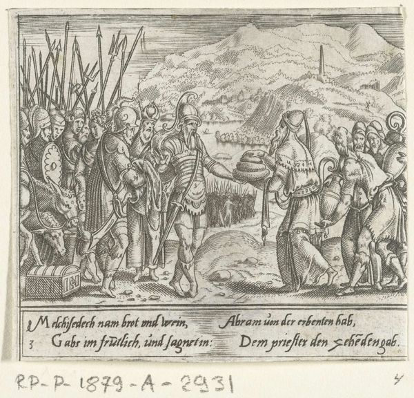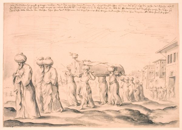 Cornelis Bos created this engraving, "Funeral of Abraham," in the 16th century. Bos, working amidst the religious and political upheavals of the Northern Renaissance, uses the biblical scene to explore themes of loss and legacy. Consider the emotional weight of this moment: Abraham, a patriarch, is laid to rest. The engraving captures a community in mourning, their faces etched with grief. Bos was a printmaker and publisher, who played a significant role in disseminating artistic ideas and styles across Europe. It is interesting to consider what impact he had on others, and his own legacy. This work resonates with the universal experience of loss, but also reflects the cultural and religious values of the time. The funeral becomes a public expression of sorrow, a collective acknowledgement of mortality and the enduring impact of those who came before us.