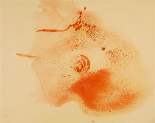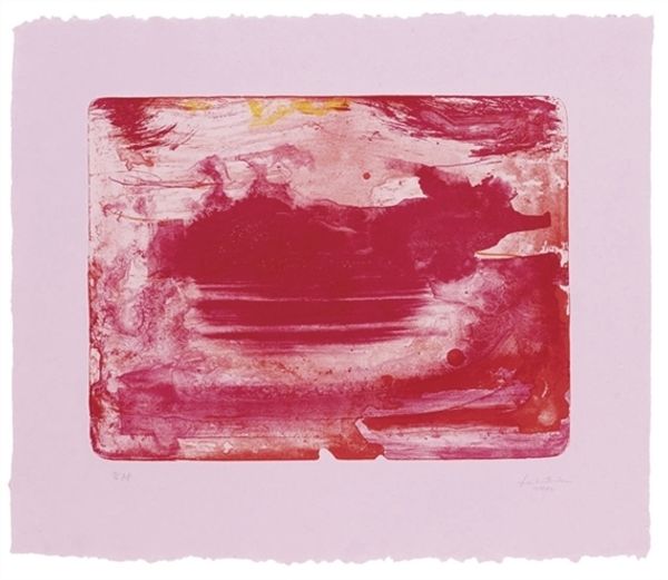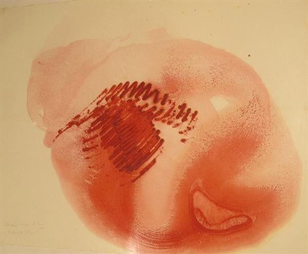Curator: This intriguing abstract piece, simply titled "Untitled," was created by Gotthard Graubner in 1964. It primarily employs watercolor and ink to deliver a composition of luminous pink squares. Editor: Well, the first thing that strikes me is the utter gentleness. It's like two softly blushing cushions floating on nothing. I am instantly at peace, almost soothed by this muted vibrancy. Curator: Yes, there's a deliberate tranquility achieved through the technique. Graubner worked a lot with color fields and layering to produce a visual field that has the intensity of a palpable depth, like clouds. Look closely—the color isn't flat; it has incredible variation. It speaks of process and control. Editor: Exactly! And those materials – the delicate bleed of watercolour, the almost hesitant marks of the ink. What paper did Graubner chose here and how was the ink applied? It makes me think about the tools used, how the water affects the texture...the entire physical process. And of course the choice of pigment – it's not just pink. It is nuanced. It invites contemplation, doesn't it? Curator: I find the monochrome choice incredibly potent as well, it distills the emotional essence into the shade itself. Why did he elect to only utilize that hue? Editor: Well, pink often speaks of optimism, femininity. But the 60's... so many possibilities within the artistic discourse of production and consumption. Curator: Perhaps, through this reduction of form and colour, Graubner challenges us to focus on the feeling—the ephemeral, inexpressible aspect of existence that hovers beneath the surface of things. The texture feels tactile. Editor: The simplicity encourages me to question. It nudges at boundaries of what "art" could even mean then—almost radical in its quiet way. Curator: I agree completely. Editor: Well, now I see more that before! It goes from pleasing pink squares to a complex array of art production, texture and meaning...all made possible through these particular materials.