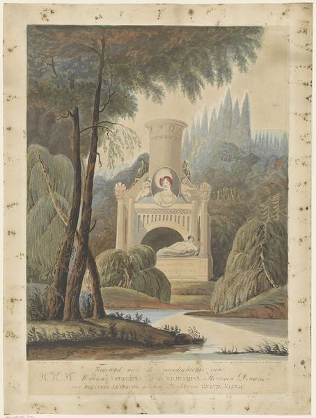 W. Johnston created this allegory of Princess Louise of Orange-Nassau's death in 1819. Dominating the scene is a grand memorial, adorned with cherubs, a portrait of the princess, and a reclining figure, symbolizing mourning. Such funerary monuments draw from classical antiquity, echoing the tombs of emperors, yet infused with contemporary sentiment. Notice how the cherubs, traditionally symbols of divine love and innocence, flank the princess's likeness. These figures are descendants of Cupid, a motif seen in Pompeian frescoes and Renaissance paintings alike. Their presence here softens the harsh reality of death, suggesting a gentle transition to the afterlife, a motif recurring in various forms throughout history. The emotional power of the scene lies in its stillness, an invitation for reflection on mortality and legacy. Just as ancient Roman sculptures memorialized emperors to shape public memory, this print embodies the non-linear progression of symbols, resurfacing with new meanings to engage viewers on a deep, subconscious level.