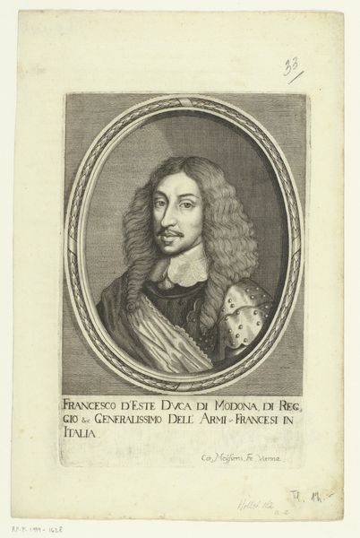 Editor: This is "Portraits of the Brothers De Witt, 1672", by Gaspar Bouttats. It's an engraving. The density of line work gives it this incredibly formal feel, yet Johan de Witt’s eyes, they seem almost gentle. How do you interpret this work? Curator: You're right, there's a tension there. It's that Baroque theatricality grappling with the Dutch soberness, isn't it? Look at how the lettering practically dances around him! And in the background is the Hof van Holland. Consider the cultural context: 1672 was a year of upheaval for the Dutch Republic; the brothers De Witt were lynched. I find it almost tragic. The composition, the meticulously rendered details… It's almost like a eulogy, isn't it? Do you feel that way too? Editor: I see it. That building, and those formal clothes...they emphasize the status of De Witt and his connection to Dutch history. And maybe that's why his eyes appear kind--to counteract that rigid formality. Curator: Perhaps... And maybe Bouttats subtly tries to capture humanity, knowing the gruesome fate to come. The text in Latin below the image only further alludes to his great wisdom. One wonders what story the image tries to weave of this prominent figure! Editor: This conversation changed how I perceived it entirely! Curator: Mine too! It always excites me how artworks carry those layers of context and stories waiting to be discovered.