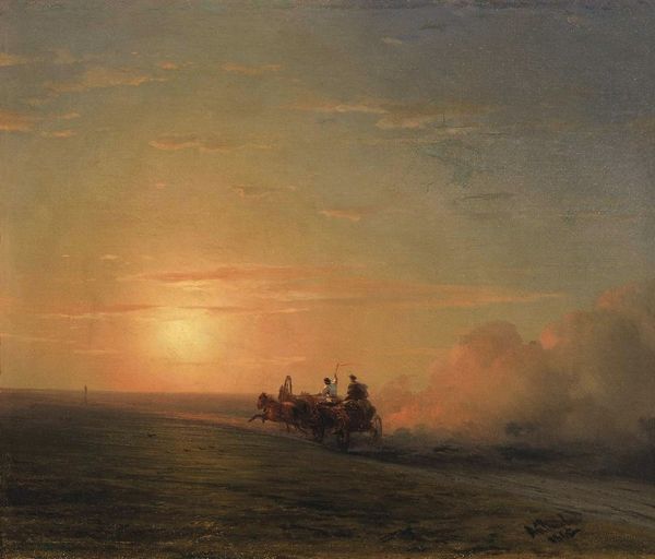This is Ivan Konstantinovich Aivazovsky's vision of an ox train on the steppe, captured with oils. Notice the long line of ox-drawn carts stretching towards the horizon. This caravan is a potent symbol of journeys, migrations, and the movement of peoples. The oxen themselves evoke ancient agricultural practices and pastoral life, reminiscent of classical images of bucolic existence. In ancient Crete, bulls were venerated as divine symbols, embodying fertility and strength. The connection between humanity and these animals runs deep, tapping into our collective memory. Like the ships that appear in Aivazovsky's marine paintings, this procession embodies human endeavor against the vastness of nature. It expresses a yearning for connection with the earth. These motifs echo through centuries, reappearing in various forms, demonstrating our continuing quest for meaning.
