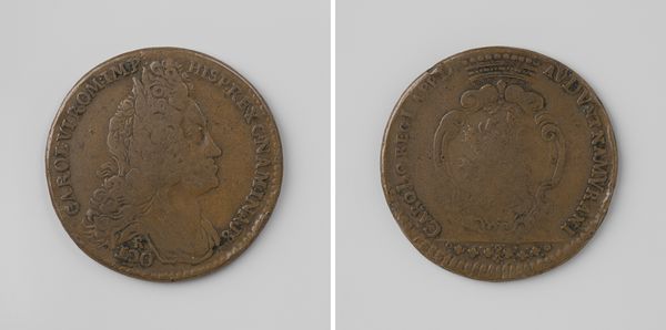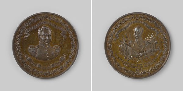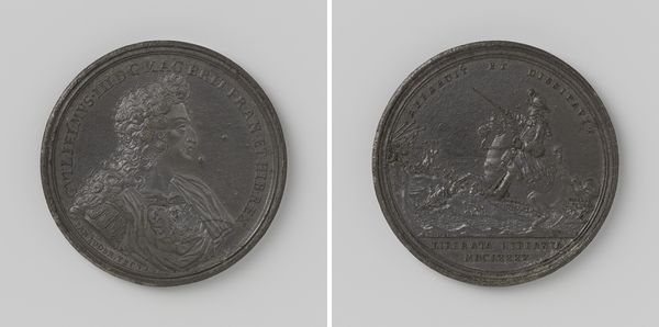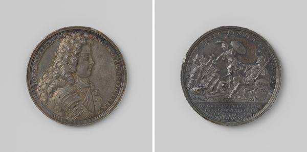 This is an uncredited medal commemorating the elevation of Willem III to commander-in-chief of the army and navy. It’s a small object, but speaks volumes about the historical context of its creation. Willem III, a prominent figure in Dutch and British history, embodies the intersection of power, politics, and identity. His rise occurred during a period of intense political and military upheaval, marking a significant moment in the power dynamics of 17th-century Europe. The medal was likely created to celebrate and solidify Willem III's authority, serving as a symbol of Dutch pride and military strength. The choice to immortalize him in metal reflects the societal values placed on leadership and military prowess. Medals like this were often distributed among elites and loyal subjects, reinforcing social hierarchies and political alliances. The imagery and inscriptions on the medal served as propaganda, shaping public perception. This medal gives a glimpse into the construction of power and identity in a tumultuous era.
