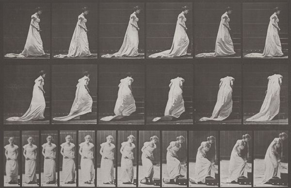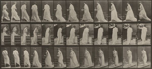 Eadweard Muybridge, with his photographic series, gives us more than just movement frozen in time. This plate features a woman carefully descending stairs with a basin in her hands. The basin, a vessel for water, immediately evokes notions of purity, cleansing, and renewal. We can look back at Renaissance paintings, and see how this object is a frequent attribute in depictions of religious ablutions, like Pontius Pilate washing his hands. This gesture appears again and again, across cultures and epochs. The act of carrying water, particularly downhill, suggests a careful balance between the sacred and the mundane. Here, Muybridge, capturing movement, prompts a deep reflection on how gestures retain their symbolic weight. They reappear, re-emerge, and evolve through our collective consciousness.
