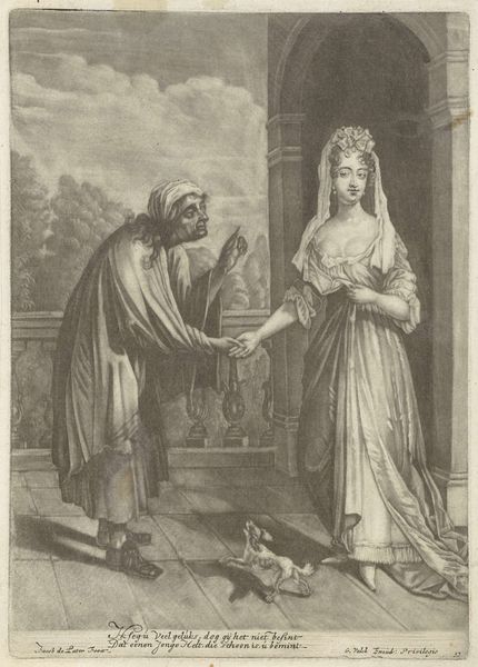 Pieter Schenk created this print, "Young Woman Receiving a Letter from a Matchmaker," capturing a scene ripe with the social dynamics of 17th-century Dutch society. The artwork depicts a young woman in a state of undress, receiving a note from an older woman, presumably a matchmaker. During this time, marriage was less about romantic love and more about social and economic alliances. The matchmaker held considerable power, influencing the lives and futures of young women. Schenk subtly critiques the objectification of women inherent in these transactions, emphasizing the loss of agency and the reduction of personal value to marital prospects. The young woman’s downcast gaze hints at the emotional weight of these societal expectations. Schenk uses the intimate setting to explore the tension between individual desires and social norms, highlighting the complexities of gender and power within the institution of marriage.