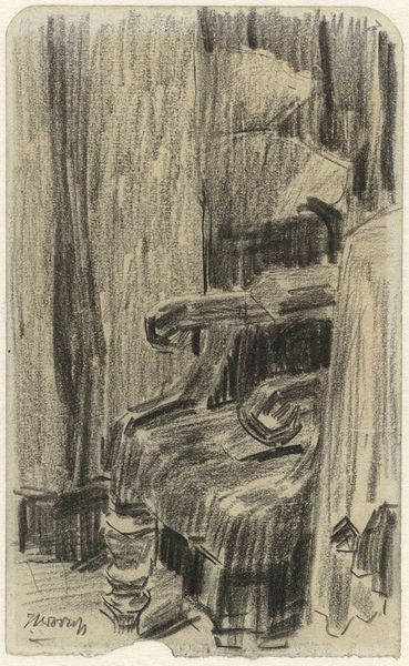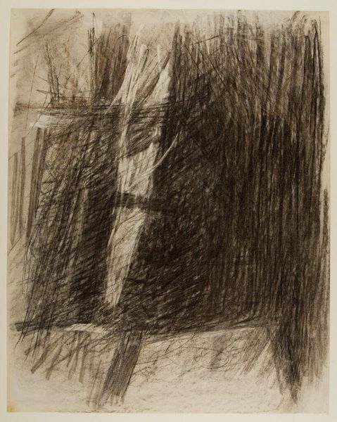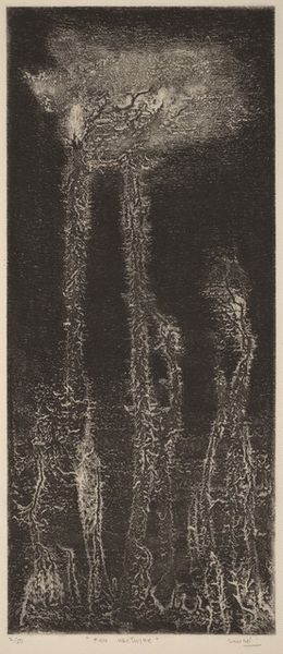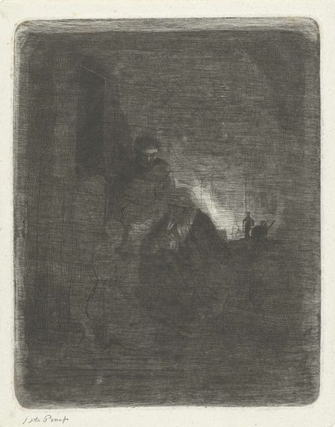 Editor: This untitled print by Christopher Le Brun is a study in contrasts, mostly black and white, and quite small. I'm struck by the rough texture and the sense of something emerging from the dark. What can you tell me about the process and materials? Curator: The cross-hatching suggests an etching technique. Think about the labor involved: the artist manually creating that dense network of lines on a metal plate. This process links the work to a history of printmaking as a means of disseminating images and ideas, challenging the preciousness often associated with unique artworks. Editor: So, the method of production itself elevates the work beyond just the image? Curator: Exactly. The labor, the materiality of the ink and paper, and its potential for wider distribution, all contribute to its meaning. How does this understanding shift your initial perception? Editor: It makes me think about accessibility and the artist's intent to engage a broader audience through a reproducible medium. It's not just about what’s depicted; it’s about how it’s made and for whom. Curator: Precisely. The means of production are integral to understanding the work's significance.