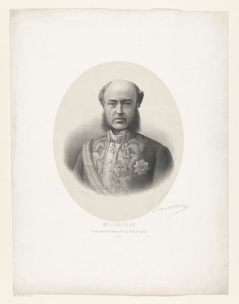 Curator: At first glance, I'm struck by the formality and slight austerity of this portrait. It's Pierre Jean Edmond Castan's "Portret van Baldomero Espartero," likely created sometime between 1827 and 1892. Editor: My eye is drawn to the incredible detail achieved with just pencil. Look at the way the light catches the metallic elements of his decorations and uniform! It feels less about capturing the person and more about meticulously recording material and status. Curator: Indeed. Let's consider Espartero's historical position. He was a prominent Spanish general and politician during a tumultuous period in Spanish history, and this portrait functions almost as a form of political communication. Editor: Right, but it also reflects the prevailing artistic trends of the time. The artist's labor becomes very evident. You can practically feel the pressure of the pencil on paper, replicating details. The work’s "realism," you could say, serves to naturalize the subject's authority, making it seem inevitable rather than constructed. Curator: I agree. Academic art conventions certainly play a role in legitimizing Espartero's image, and this depiction offers much insight into the values of the Spanish court during that period and what they desired to project. What kind of conversations it spurred about military glory and national identity interests me. Editor: Absolutely. And what does this precise rendering mean in terms of class? For the elites of the time, access to such artistry was commonplace. How does mass reproduction play a role here, with drawings being more easily and widely shared than painting? Curator: It pushes me to think about how even seemingly straightforward portraiture contributes to broader systems of power and cultural production. This drawing serves both as documentation and a site of cultural encoding. Editor: For me, focusing on materiality helps avoid art history remaining a story of great men and aesthetics. We see the tools, the skills, the societal position, the political conditions necessary for a portrait like this to even exist. Curator: So, it serves as a lens to view 19th-century society. The pencil itself is also a quiet commentator. Thank you.