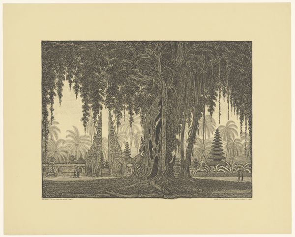 Curator: Let's turn our attention to "Kasteel Ganne," an engraving from 1856. What are your initial thoughts? Editor: It evokes a sense of melancholy. The starkness of the black ink against the paper emphasizes the ruinous state of the architecture. Decay becomes the focal point. Curator: The print is fascinating for its use of the engraving technique to capture architectural detail. Notice the cross-hatching employed to describe the texture of the stone, reflecting Romanticism's preoccupation with picturesque decay. It really highlights the skill and labor of the printmaker. Editor: Absolutely, the crumbling stone speaks volumes. Castles, especially those in disrepair, frequently stand in art as symbols of vanished power, lost eras, or the transience of earthly things. And this engraving seems no exception. Curator: The process by which this image was made is really vital here. The image would have had to be created by physically etching an image into a copper plate and printed in large numbers. The materials themselves tell a story of production and circulation in the mid-19th century, think about who this print was made for and how they understood it? Editor: That's a compelling consideration. Given its age and depiction of castle ruins, perhaps this work aims to tap into an interest in heritage. And I imagine these two female figures placed so precisely by the arches, remind viewers to contemplate their own relationship with history. Curator: These Romantic images were highly sought after for those with means who may never have been able to see these sites in person, widening our consideration from the artisan involved to those buying the work too. Editor: Seeing the enduring presence of symbols, as we've touched on, provides such a meaningful lens to understand how human perception and sentiment travel across time. Curator: And understanding its production lets us reflect on the culture that consumes them. Thanks for drawing out these interesting connections. Editor: My pleasure; your observations about material and audience opened it up considerably for me too.