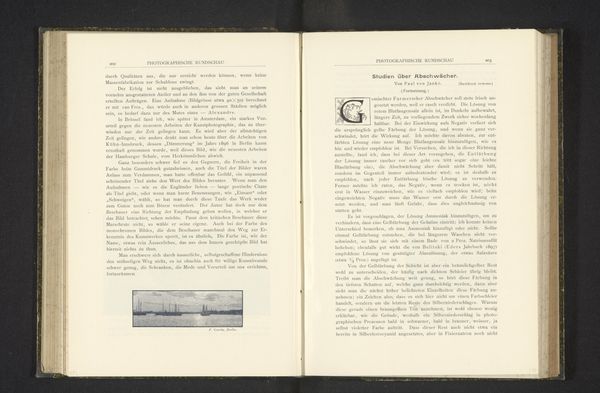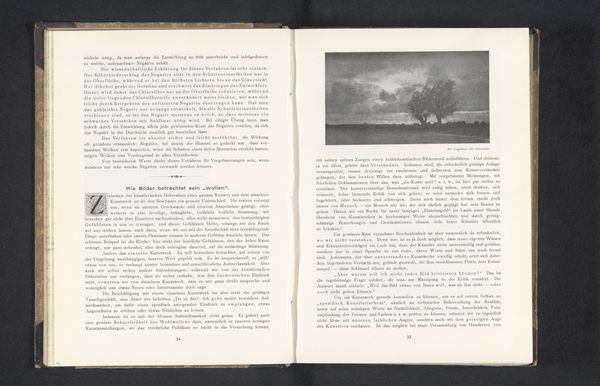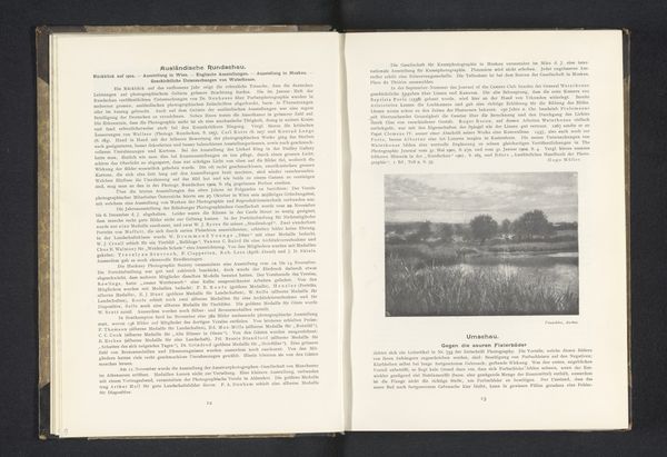 This landscape, or 'Landschap', was made by Hans Watzek, sometime in the late 19th century, using a photographic process. It's a small image, almost postcard-sized, and printed within a book. What strikes me is the tonal range: those soft greys and cloudy whites. It’s like looking at a memory. The composition feels very deliberate, almost classical, with the dark, solid forms in the foreground and then fading into the distance. I notice the way the light catches the top of what looks like a mountain in the background. It feels like a romantic gesture, almost reverential. It’s not just a picture, it's an experience of looking. There's a stillness to this image that reminds me of Caspar David Friedrich, who was painting these kinds of landscapes in the earlier 1800's. Both artists evoke a sense of contemplation, inviting us to wander into the scene. They remind us that art is an ongoing conversation about how we perceive and experience the world around us.