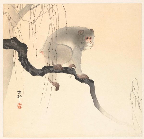 Ohara Koson made this Monkey on a tree branch with ink and colour on paper, and for me it is as much about the off-white of the paper as the grey washes of the monkey and branch. The colours are so muted, like a memory, and the forms have been built up slowly, with many thin layers of ink. Look at the rendering of the monkey's fur – it's so light, like it might just float away. It’s like Koson is trying to capture not just what the monkey looks like, but how it feels to see it perched there, with the branch and the weeping willow, somehow evoking the chill of a grey day. The monkey's paws are so expressive, clinging to the branch and the whole image seems to be a lesson in how less can be so much more. It reminds me a bit of some of Agnes Martin's work, that focus on quiet and repetition to create a feeling of meditative calm. There are no fireworks, but it is very powerful for that.