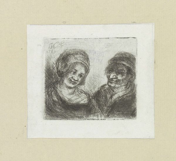 Jan Chalon created this small etching of four men some time before 1795. The figures are arranged in a tight grid, portraits above and full-length figures below. The image is evocative of Dutch genre painting of the 17th century. The dress and character of the figures seems consistent with that earlier period. We might ask, then, what was the public role of art in the 1700s? In countries like the Netherlands, which had seen the rise of a powerful middle class, art became a commodity. Artists produced images of everyday life for a growing market of private collectors. Chalon likely saw the marketability of this imagery, and produced it for a culture of collectors who were interested in the art and fashion of the past. Historians use an understanding of those economic and social conditions to interpret the true meaning of art.