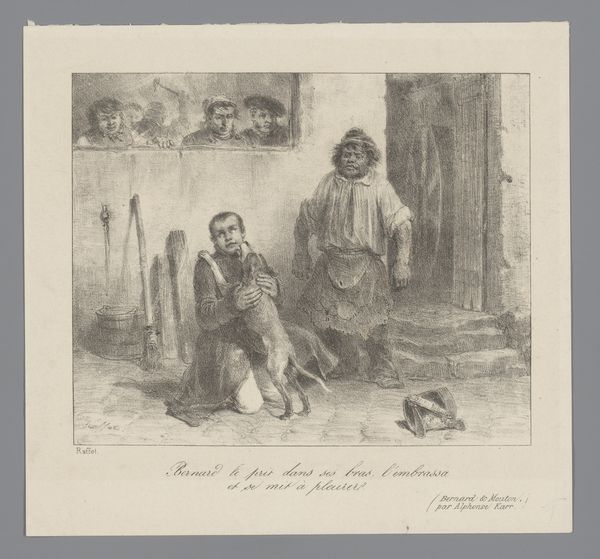 Editor: This is Alexandre-Gabriel Decamps' "Recess," made in 1834, a drawing and print currently held at the Met. It strikes me as a depiction of impoverished rest. What aspects of the work stand out to you? Curator: Consider the material realities inherent in the production of a print like this in 1834. Think of the labour involved in creating the matrix, whether etched or engraved. This isn't some spontaneous sketch, but a carefully reproduced image meant for wider circulation, yes? Editor: Absolutely. It makes me think about the intended audience. Who would have been able to afford such a print? Curator: Exactly! And what does the subject matter suggest about that audience? Are they identifying with these children, or are they consuming an image of poverty from a position of privilege? Notice the dirt, the worn clothing. These details are meticulously rendered, underscoring the materiality of their existence. What purpose might this serve? Editor: Perhaps to evoke empathy or… perhaps just to visually distinguish them as "other"? The landscape seems almost oppressive as well. Curator: Precisely! Romanticism often exoticizes poverty, imbuing it with a certain picturesque quality, yet conveniently obscuring the harsh realities of labor exploitation that fuelled industrialization. Is "Recess" merely documenting or is it perhaps complicit in this broader trend? Editor: That's a great question, one I hadn't considered. It's much more than just a scene of children resting. I'm definitely looking at the piece differently now. Curator: Indeed, considering the production and intended consumption of this image is crucial to understanding its role within its socio-economic context. This awareness makes us more mindful of these representations, especially nowadays, no?