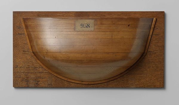 Editor: Here we have a piece called "Schot van betimmering uit huis Dentz van Schaick" by Carel Adolph Lion Cachet, dating around 1900-1905. It appears to be made of wood and looks like decorative paneling. I'm immediately drawn to the craftsmanship and how the darker wood contrasts with the lighter inlays. How do you read this work? Curator: As a materialist, I find it crucial to investigate the labor involved in producing these wooden panels. Consider the tools and techniques necessary for carving and inlaying. This isn’t simply decorative; it’s a statement about skilled labor at the turn of the century, contrasting factory production and the Arts and Crafts movement. What can we deduce about the social status of those who made it versus those for whom it was made? Editor: That's a really interesting way to look at it. I hadn't considered the social implications embedded in the craft itself. Does the Art Nouveau style play into this dynamic at all? Curator: Absolutely. Art Nouveau, while often associated with luxury, was also a reaction against industrialization. Here, the wood itself becomes a signifier, distancing itself from mass-produced materials like steel or cheaper composites. Who had access to the materials? Was it locally sourced, influencing its cost? Consider the choices in production beyond just aesthetics. Editor: So you're saying that understanding the context in which it was created – the means of production, the available materials, the labor involved – gives us a much deeper understanding of its significance than simply admiring the design? Curator: Precisely. And think about consumption. Who was this paneling for? What kind of life was lived amidst it, and what was the effect of displaying status via production choices, like choosing to pay a high premium for natural over mass-manufactured design choices. Editor: That gives me a completely new perspective on this. It is no longer just a beautiful object, but a tangible record of a specific time, place, and set of socio-economic relationships. Curator: Indeed, by analyzing material culture, we reveal underlying power dynamics shaping both art and society.