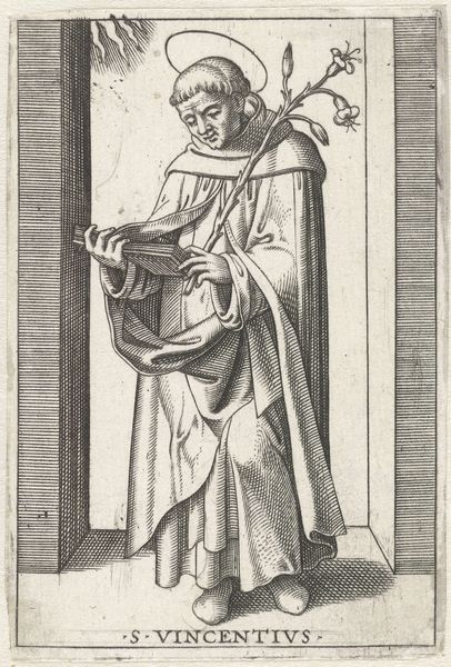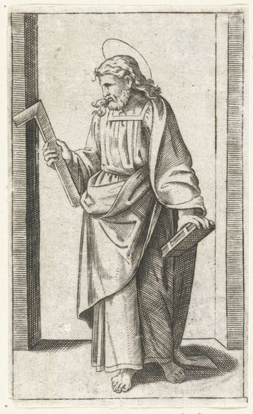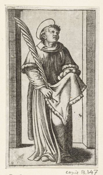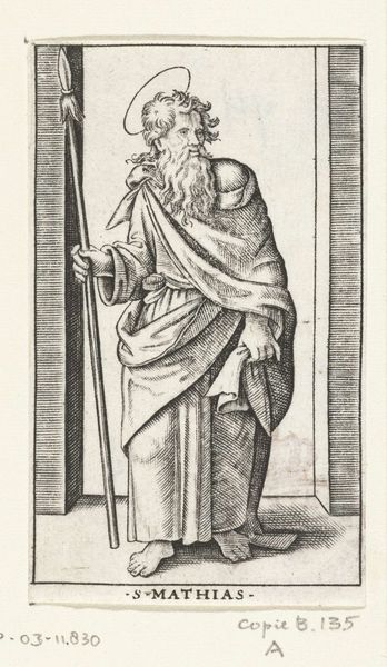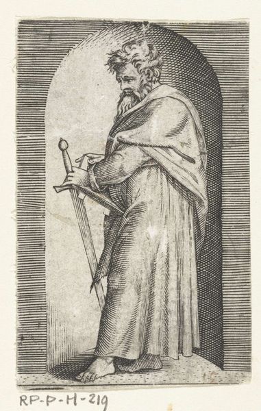 This engraving presents the Apostle Paul, recognizable by his sword and halo. The sword is not merely an attribute, but a symbol of his martyrdom, signaling his execution by the sword in Rome. More profoundly, it represents the Word of God, a weapon of spiritual combat. We see this motif echo across centuries, even in unexpected guises. Think of the winged Nike of Samothrace, a classical sculpture embodying victory, which in turn resembles the archangels standing over a defeated Lucifer. The Apostle Paul's sword embodies a similar triumph, a potent symbol of transformative power. It's an emotional beacon, promising redemption. This image is not just a depiction of a saint, but a part of an ongoing dialogue between symbols. It's a reminder that images evolve, adapt, and resurface, carrying echoes of past meanings into the present.