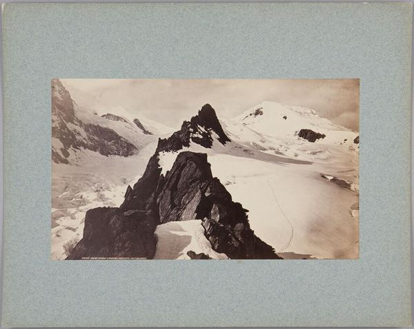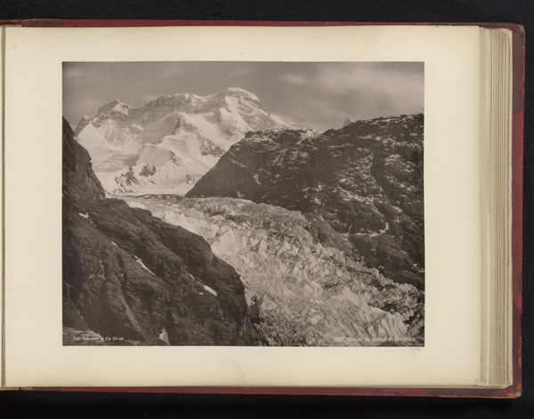 Editor: This photograph by A.G. Wehrli captures the Rimpfischhorn and Strahlhorn peaks with the Findelen Glacier. It's a stark black and white image, making the landscape look quite severe. What historical context can you bring to this depiction of the Alps? Curator: This image, likely from the late 19th or early 20th century, speaks to the romantic idealization of nature and simultaneously reveals a power dynamic. Who has access to this landscape? Whose narrative are we seeing? Consider the impact of early tourism and scientific expeditions on these environments. Editor: That makes me think about climate change differently; it is also about who experiences it. Curator: Exactly. The photograph isn't just a record; it's a document of its time, shaped by privilege and perspective. Editor: I'll definitely look at landscape photography differently from now on! Curator: Excellent. Keep asking those questions.