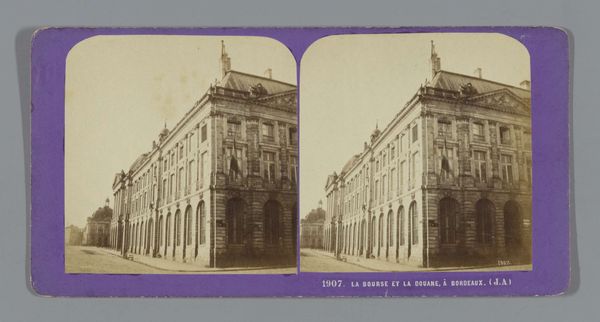 This is a stereoscopic image of the Musée-Bibliothèque in Le Havre, made by Jean Andrieu. Stereoscopy was a popular technique in the mid-19th century. Two photographs, taken from slightly different angles, are mounted side-by-side. When viewed through a special viewer, the image appears three-dimensional. Photography was still a relatively new technology in Andrieu's time, and stereoscopy was a way to make the images more realistic and engaging. It was also a relatively democratic form of image production because of its reproducibility. Note the labor involved in this image. There is the photographer, who had to have some knowledge of chemistry and optics, and the workers who prepared the photographic plates and printed the images. Stereoscopic images like this one were often sold as souvenirs, and they offered a glimpse into other places and cultures.