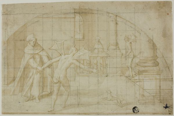 Editor: This sketch, "Dock Scene," is by Guillaume Courtois, made around 1660 to 1664, using chalk on paper. There's an energetic quality to the lines that really conveys movement and activity in the dock. What do you see in this piece, especially given its preliminary nature? Curator: Well, it strikes me first as an index of labor. The visible hand of Courtois, through the rapid chalk strokes, reveals the initial stages of artistic production. Consider the socio-economic context: who would have had the luxury to produce such sketches? Was this a study for something larger? The verso may give us a clue to the artist's interests... History painting, perhaps. What might it tell us about 17th-century patronage and workshop practices? Editor: That's fascinating. I was focusing on the composition and the figures themselves, but thinking about the labour involved makes me reconsider the whole scene. It looks spontaneous, but each line was intentional labour. The existence of this artwork is a result of complex structures of support. Is there an intended connection here between the figures on the dock and the manual labour that makes artistic creation possible? Curator: Precisely. And note the materials: chalk and paper. These were not always readily available. Access to them reflects the artist's place within a system of production and consumption. The Baroque period valued grandeur, yet here we see a humble material record of its genesis. Editor: So it's not just about the beautiful finished artwork in the palace, but also about the workshops and economies that facilitated those masterpieces. The discarded sketches, then, become valuable records of art making as labor, in addition to their potential as preparatory works. Curator: Exactly. Examining the 'how' and 'why' of art making unveils a richer, more nuanced story than simply appreciating the 'what.' This 'dock scene' becomes a window onto the material conditions of artistic production itself.