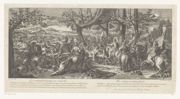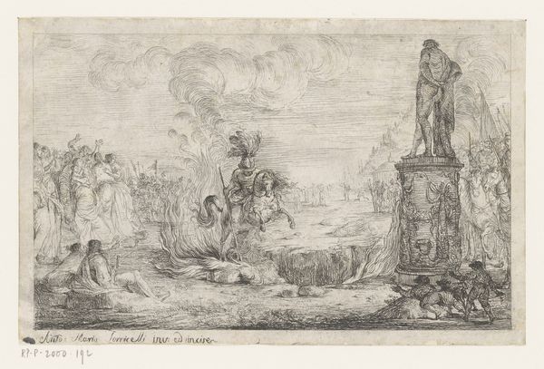Johann Esaias Nilson made this print of men and women beneath a signpost, likely in Germany, during the 18th century. A clue to this can be found at the bottom of the artwork, with a few lines of German text decorating the lower portion of the artwork. Nilson's composition speaks to the social and cultural life of the period. The group is gathered under a signpost, perhaps symbolic of life's journey or moral decisions. Consider the clothing of the figures; their attire hints at a level of social status that would have been prevalent at the time. Note also the division of space within the print; the background shows an ordered landscape and a church, suggesting the influence of religious institutions on daily life. The study of prints like this one involves a combination of visual analysis and historical research. By looking at costume, class structure, and cultural values, historians can better understand how art reflects its own time.