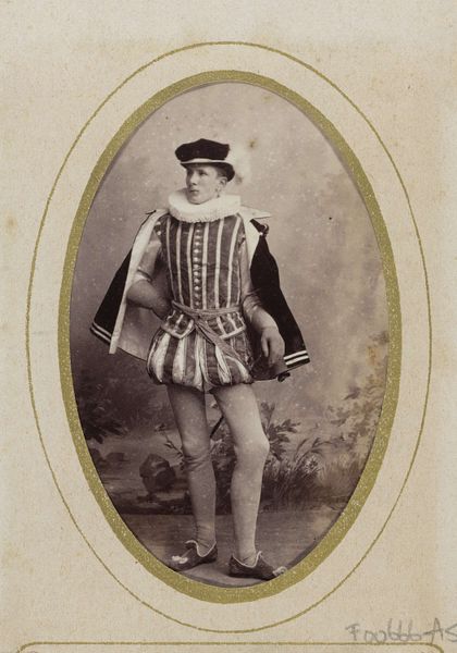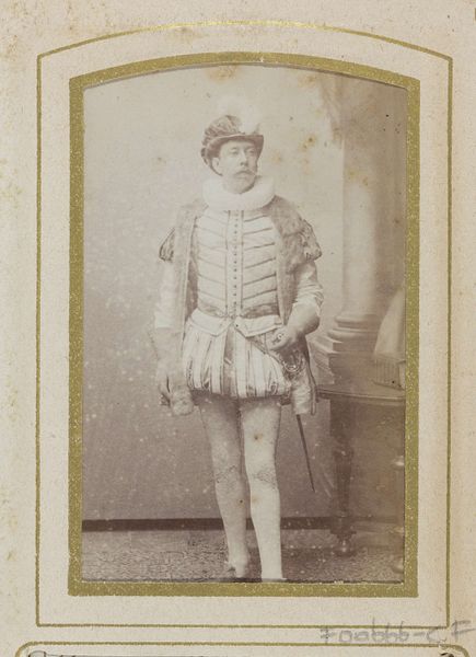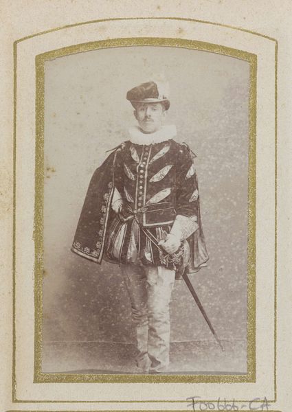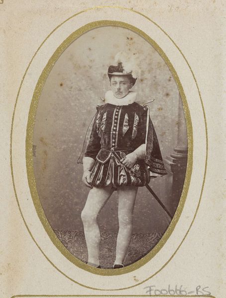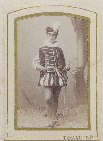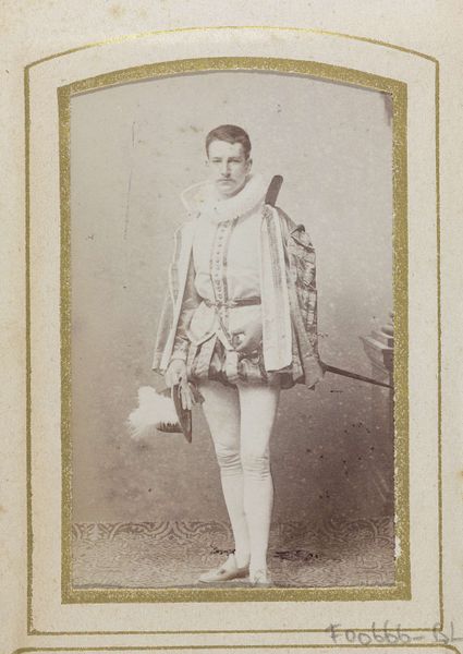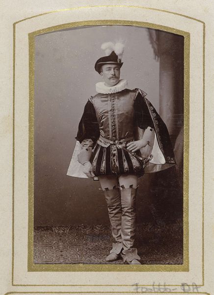 Jan Goedeljee captured this portrait of a young man, possibly G.J. Nijhuis, using photography, a relatively new medium in the mid-19th century. Goedeljee, working in the Netherlands, creates a staged scene reminiscent of earlier portraiture traditions, with his sitter posed in what appears to be historical costume. The photograph suggests a performance of identity. The sitter may be signalling a connection to a romanticized past, or perhaps, commenting on contemporary notions of masculinity and class through dress. The sword alludes to power and status, while the elaborate clothing speaks to a certain level of affluence. The subject’s confident stance and direct gaze invite us to consider how he wishes to be seen. This image prompts us to reflect on the ways individuals use clothing and historical references to construct and communicate identity. It is an exploration of the relationship between past and present, image and self.