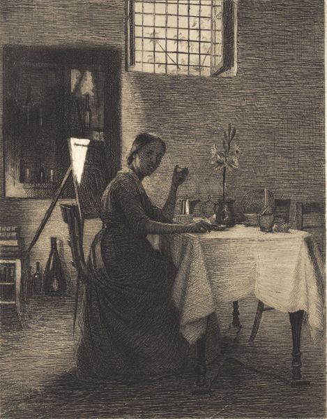 Honoré Daumier made this lithograph, "Femme de lettre humanitaire se livrant sur l'homme…," using a greasy crayon on a smooth slab of limestone, a process that democratized image production in 19th-century France. The inherent qualities of lithography allowed Daumier to achieve velvety blacks and nuanced grays, crucial for the cartoon's satirical tone. Each line, each shadow, speaks to Daumier's critique of the 'bas-bleus' or bluestockings, intellectual women who challenged societal norms. The social context of the lithograph—mass-produced and distributed—amplifies its message, reaching a wide audience and fueling debate about gender roles and intellectualism. Daumier's skill in manipulating the stone and grease, combined with the printing process, is what gives this image its enduring power and bite. It is a reminder of the rich history of creative practices beyond the confines of fine art.