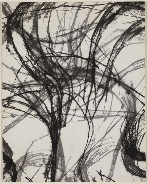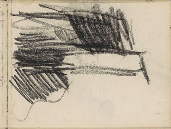 Editor: Here we have Jack Tworkov's "Untitled (Study for 'East Barrier')." It's a charcoal drawing, quite dark and intense. What can you tell me about its potential cultural significance? Curator: Given its title relating to an "East Barrier," consider the socio-political climate. Was the artist engaging with Cold War anxieties or perhaps referencing barriers within societal structures? How might its reception have been shaped by those contexts? Editor: That's interesting. I hadn't thought about it in terms of Cold War imagery. So, the "barrier" could represent more than just a physical structure? Curator: Precisely. Art often reflects and refracts the dominant anxieties of its time. Examining the exhibition history and critical reception of Tworkov's work provides further insights into how this piece functioned within broader cultural conversations. Editor: Thanks, that really broadened my understanding. I see it now as more than just an abstract drawing. Curator: Indeed. By considering the historical and social context, we can unlock deeper layers of meaning and appreciate the work's role in shaping public discourse.