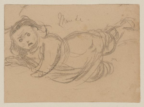 Editor: This drawing by Arthur Boyd Houghton features two children, probably from 1866. There's something very intimate about the scene, almost like a snapshot of private life. What do you see in this piece, considering its historical context? Curator: Houghton's domestic scenes offer valuable insights into Victorian social values. The focus on childhood innocence, rendered in a seemingly candid manner, reflects the era's sentimental view of family life. How might its display within a public collection like the Tate shape our understanding of such private moments? Editor: That's a great point. Thinking about it that way makes me consider how staged these images might actually be. Thanks! Curator: Indeed, the tension between the perceived naturalism and the constructed nature of these images is critical. It's fascinating to consider how public institutions influence the reception and interpretation of such works.