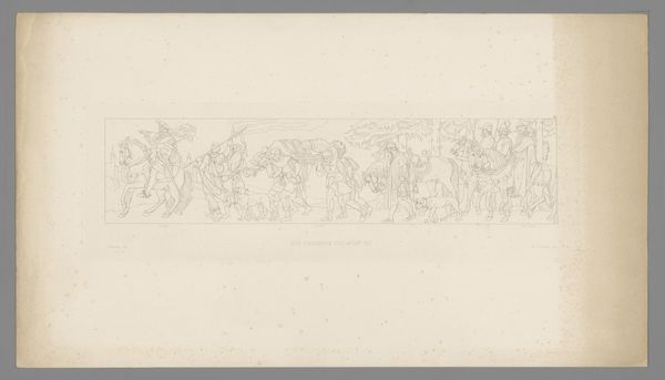 Jan Willem Pieneman created this graphite drawing, “Detail uit het schilderij De Slag bij Waterloo,” capturing the chaos of battle. Note the dynamic figures, some mounted on horseback, and the central figure raising his hands in what seems like a plea or a gesture of surrender. This gesture, reminiscent of the ancient orant figure, transcends mere surrender. It taps into a deep-seated human expression of vulnerability and supplication. Think of the countless depictions of saints and martyrs throughout art history, their arms raised in prayer or acceptance of fate. This motif appears across cultures and eras, from ancient Roman frescoes to Renaissance paintings, each time imbuing the scene with a sense of divine intervention or profound human suffering. The collective memory of such imagery imbues this battlefield scene with a tragic dimension. The raised arms, passed down through time, trigger subconscious associations with sacrifice and resignation, engaging us on a visceral level with the human cost of war.
