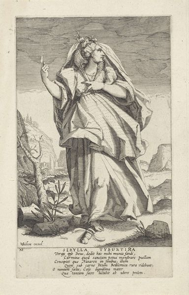 Editor: This engraving, "Heilige Marina van Alexandrië als kluizenares," by an anonymous artist from around 1590-1662, depicts Saint Marina. The stark contrast between light and shadow really captures the gravity of the saint's devotion. What elements stand out to you? Curator: Considering it's an engraving, the labor and skill invested in physically creating those lines to generate tonal value is really quite remarkable. Also, notice how the artist depicts her not as a queen who rejects marriage, but as a worker who withdraws to create. Her devotional practice and life of prayer were, at their essence, a kind of skilled, spiritual labor. Editor: That's interesting, I never considered it that way! The inclusion of the skull is quite vanitas though. Does the means of producing prints change how we consider Baroque art? Curator: Absolutely. Engravings made art accessible beyond the wealthy elite. Think of the materiality of the print itself – paper, ink, the metal plate used for engraving. These materials, the product of labour, facilitated a wider dissemination of religious and moral narratives, influencing social values. Consider also where such a print may have been hung, for whom, and how that may reflect values in consumption? Editor: So it's not just about the image itself, but the physical process of making it that gives it meaning. And, its context. The economics! Curator: Precisely. The very act of reproducing this image connects artistic expression to the machinery of its time and opens opportunities for interpretations far beyond devotion, particularly surrounding production and material consumption. Editor: I'll definitely be thinking about prints differently now! The engraving process as labor is not something I’d considered before. Curator: It challenges us to reconsider traditional definitions of art and artistic skill itself, doesn't it?