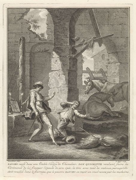 This print, made by Johann Wilhelm Kaiser in the 19th century, shows Walraven van Brederode escaping from prison in 1471. It speaks to the visual codes of nationalism and history painting that developed across 19th-century Europe, including in the Netherlands. Kaiser created this image during a period of intense nation-building in the Netherlands. The print depicts a heroic figure, a member of the Dutch nobility, escaping imprisonment. The dark, dramatic atmosphere and the focus on individual bravery evoke the Romantic sensibility, which was often used to portray historical events in a glorified manner. The choice of this particular historical event—Walraven van Brederode's escape—may reflect the cultural and political concerns of the 19th century, specifically the desire to create a sense of national identity through shared historical narratives. To fully understand its meaning, we might research Dutch history of the 15th century, as well as the history of Dutch nationalism and its use of visual imagery. The role of the Rijksmuseum is crucial here too, as it acts as a prominent institution in shaping national identity.