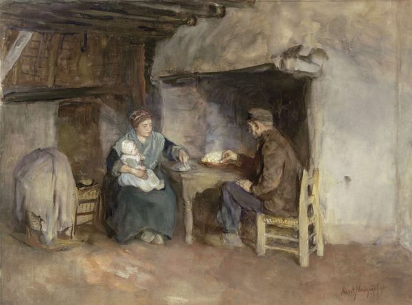 Harriet Backer's painting depicts two men in what appears to be a humble workshop. The men are engrossed in their work of mending shoes, which takes place in a humble dwelling. The light from the window behind them illuminates the scene. Consider how the window, a recurring symbol in art, is used here. Windows, traditionally associated with clarity and vision, offer a glimpse into the world beyond. In many paintings, the use of windows has signified hope and reflection. While they physically illuminate a room, they psychologically represent enlightenment. But the light in this painting is subdued, not illuminating the figures fully. It's as though Backer suggests that while windows offer clarity, the truth they reveal can be muted by our own perceptions. The depiction of men in quiet labour evokes the dignity of work, but also hints at the emotional weight of a life lived in humble circumstances. Like the window, it will continue to reappear, evolving in meaning yet still resonating across time.
