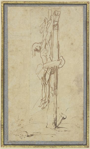 Jacques Courtois created this sketch of Saint Nicholas and a desperate sailor using pen and brown ink on paper. The lines are quickly and freely drawn, giving the figures a sense of movement and emotion. Courtois clearly wanted to capture the essence of the story, not the details. The light paper shows every stroke, revealing the artist's hand at work and the immediacy of the creative process. Pen and ink are relatively inexpensive and highly portable, making them ideal for preparatory drawings like this one. Drawings like this were essential in an artist's practice; they were used to explore ideas, work out compositions, and study figures before committing to a final painting. It offers a glimpse into the artist's studio, and reminds us that even the most polished works of art often began with humble materials and a lot of hard labor. It also bridges the gap between craft and fine art, by demonstrating the importance of technical skill in the creation of even the most seemingly effortless images.