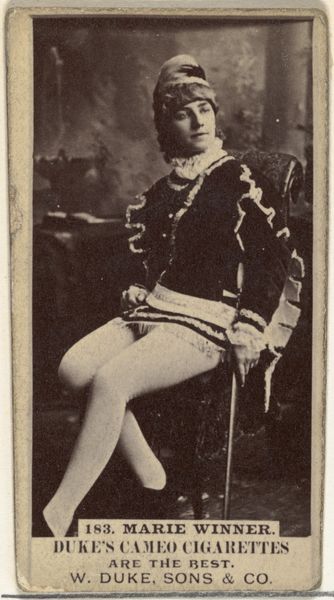 This is Ilma Converse, from the Actors and Actresses series made by Allen and Ginter for Virginia Brights Cigarettes. These cards were popular in the late 19th century, reflecting the Victorian era's fascination with celebrity and performance. Ilma Converse, posed in what appears to be a theatrical costume, offers a glimpse into the complex dynamics of gender and representation in the entertainment industry. This card was a consumer good aimed at male smokers. The series captured the charisma of performers but also contributed to the commodification of their image. Consider the implications of Converse being packaged and sold alongside cigarettes: How does this affect her identity as a woman, an actress, a public figure? In what ways does the commercial context shape our understanding of her performance and persona? This image prompts us to consider the layers of meaning embedded in the circulation and consumption of images.