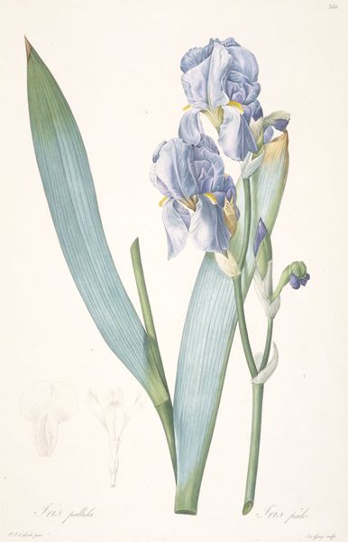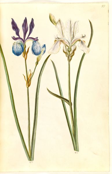 This is a watercolor and gouache on paper of two irises, made by Hans Simon Holtzbecker in the 17th century. Holtzbecker was working during a period when botanical illustration was highly valued, both as a scientific tool and as an art form. The intense detail with which Holtzbecker renders the two irises speaks to the cultural and scientific interests of his time. The iris, named after the Greek goddess of the rainbow, often symbolizes faith, hope, wisdom, courage, and admiration. The white iris pallida on the left and the yellow iris variegata on the right, with their delicate shading, invite us to consider the intersection of art, science, and symbolism in the 17th century. In Holtzbecker’s meticulous depiction, we might contemplate the complex relationship between humans and nature, between the objective pursuit of scientific knowledge and the subjective experience of beauty and meaning.