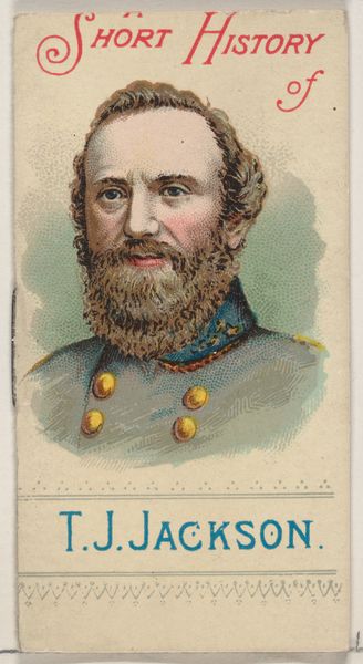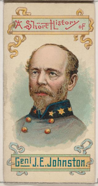 Curator: So, tell me, what do you make of this portrait of General William J. Hardee? It’s one of a series of collectible cards from 1888 by W. Duke, Sons & Co., inserted in their cigarette packs. Made with colored pencil, quite charming, isn't it? Editor: Charming and unsettling, I’d say. He has that penetrating stare… almost makes me want to apologize for something! It's such a tiny, precious format. You almost wouldn't expect the general to come off so imposing. Curator: Imposing for such a little thing! Yes, these cards were part of a marketing strategy, using patriotism and nostalgia to sell cigarettes in the post-Civil War era. Hardee, of course, was a Confederate general. Editor: It’s fascinating how consumerism intersects with historical narratives. Putting a controversial figure like Hardee on a cigarette card feels like sanitizing history, making him palatable for mass consumption, don't you agree? Like his intensity is merely another flavour for your enjoyment. Curator: Absolutely. Think of the wider implications, too. This kind of visual representation played a crucial role in shaping public perception. Hardee wasn't just a general; he became a symbol, mediated by the cigarette company and experienced privately. I also like how accessible this art is given its intent. No longer is art accessible only to the elite. Editor: It's eerie how commerce appropriates history. We're left contemplating Hardee’s legacy not on the battlefield, but encased with curls of smoke. It begs the question: who gets to control history and for what purpose? Curator: Indeed. It serves as a potent reminder to view such historical artifacts with a critical lens, thinking about how symbols shift within culture and time. Even as a cigarette card. Editor: Ultimately, looking at this peculiar portrait makes me conscious about all the strange ways history sneaks into our lives and how advertising agencies attempt to commodify our shared memories. A true memento mori in the most perverse sense!