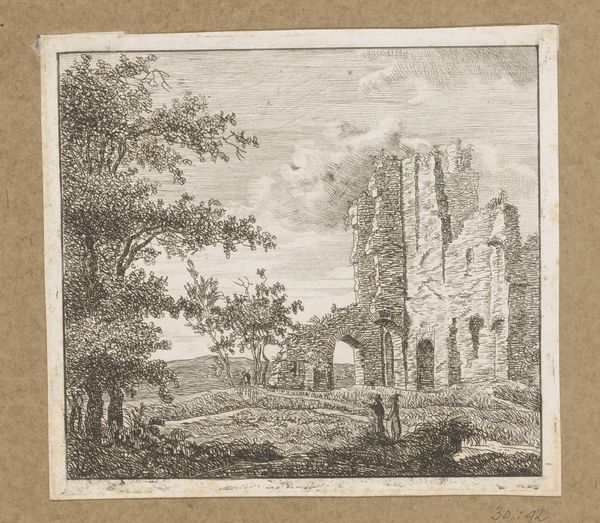 Jes Bundsen made this etching, "Ruin af en Klosterbygning," around the turn of the 19th century. The image is built up through networks of fine lines incised into a metal plate, which would have been a labor-intensive process. Notice how the varying density and direction of these lines give shape to the ruined architecture and surrounding foliage, and evoke a sense of decay. Bundsen would have worked with tools to physically cut lines into a printing plate, using acid to deepen the grooves. Ink would then be applied, and the surface wiped clean, leaving ink only in the etched lines. The image is then transferred to paper using a printing press, a technology that democratized image production, allowing for wider circulation of visual information. Consider the social context, as well. Printmaking was integral to the Enlightenment project, making knowledge accessible to broader audiences. Bundsen’s print captures the romantic fascination with ruins, inviting reflection on history, time, and the transient nature of human endeavor. In looking at this etching we appreciate the fusion of skilled handwork, chemical processes, and mechanical reproduction.