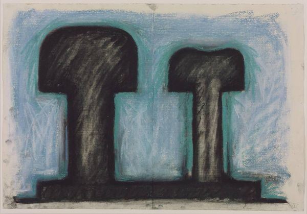 Editor: Rudolf Láng's "Cloudy Weather Above The Loire," painted in 1960 using oil, strikes me as surprisingly structured for an expressionist piece. It feels almost architectural, with those heavy blue forms. What do you see in this painting? Curator: I see a visual articulation of the post-war yearning for stability and rebuilding. While the title references nature, the painting, in its near abstraction, speaks to the fractured landscape of Europe, both physically and psychologically. How might we interpret these solid blue forms, not as simply "the Loire," but as representing the foundations – perhaps unstable – upon which a new society was being constructed? Editor: I hadn't considered the historical context in that way. The colours, especially the blues, now seem less serene and more…striving? Curator: Precisely! Láng was painting during a period of immense social change. Consider the abstract expressionist movement more broadly: its emphasis on individual expression and gesture can be seen as a reaction against totalitarianism. Does this reading shift how you understand the apparent rigidity of the composition? Could those “architectural” forms represent confinement as much as structure? Editor: That's a powerful point. I was so focused on the visual, I overlooked the socio-political currents swirling beneath the surface. It feels like the painting is less about a specific place, and more about a moment in time, loaded with hope and anxiety. Curator: Absolutely. And by examining the historical and political environment during Láng's life we discover what that implies for those of us perceiving it in our present context. What implications can we gather through this lens of social commentary? Editor: Now I’m thinking about the ongoing need to rebuild and redefine our societies. Even abstract art has concrete connections to our lived experience. Curator: Indeed. Art can inspire activism, can remind us to fight injustice, or to appreciate beauty, if only we open ourselves to interpretation beyond our own preconceived biases.