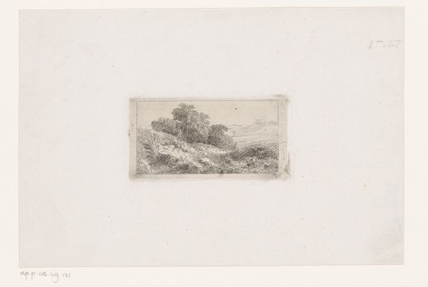 Antoine Severin made this landscape with a house on a riverbank as an etching. Here we see a humble dwelling, a testament to the lives lived close to the land. Severin offers us a glimpse into a world where nature and human existence intertwine. During this time there was growing industrialization, which often romanticized rural life. "Landschap met een woning op de oever van een rivier" suggests a subtle commentary on the human condition. Is it possible that in the rise of factories and urban centers there was a growing longing for simplicity? As you reflect on the artwork, consider the stories and experiences that are interwoven within this scene, and take the time to imagine the lives that unfolded along this tranquil riverbank.