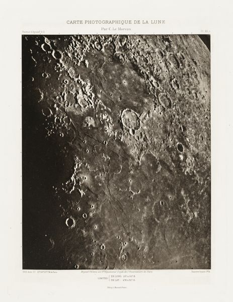 Charles Le Morvan made this photographic chart of the moon sometime between 1865 and 1933, using photography to document its surface. I love to look at it, thinking of the painstaking process, the artist working away in monochrome. There’s something about the texture, the way the craters catch the light and shadow, that feels incredibly tactile. You can almost feel the grit and dust, the cold, silent vacuum. It's hard to believe this isn't a drawing, a work of the hand. Look at the upper right corner, where the light stops; it's such a contrast to the pitted surface. The depth of field gives the illusion of the spherical; it's so different to a painting because of the lens. I wonder how they felt about this new kind of image making? For me, this plate echoes the graphic work of someone like Vija Celmins. Both artists share that same dedication to the surface and the subtle, quiet beauty of shades of gray. This feels like a real conversation across time.