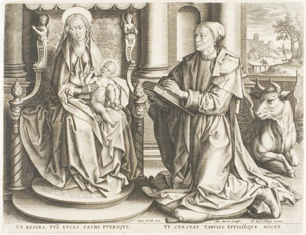 Editor: This is "The Lent Jewels," an engraving by the Dalziel Brothers after William Holman Hunt. The intricacy of the line work is quite striking! What stands out to you about its composition? Curator: Note the interplay of light and shadow, achieved through the varying density of the engraving lines. Observe how Hunt and the Dalziel Brothers have used this contrast to define the figures' forms and direct the viewer's eye. The linear perspective also creates depth within the composition. Editor: I see what you mean. The strategic use of light definitely adds to the somber mood. Thanks for your insights! Curator: Indeed. It is in the subtle manipulations of form and space that the engraving's power resides.