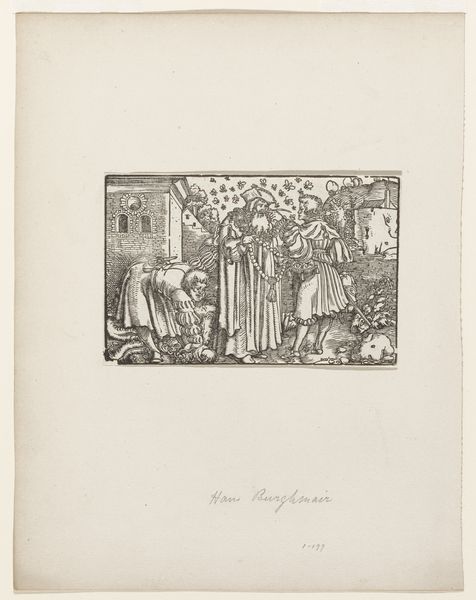 Curator: Here we have a print called "Heilige Familie met Anna," or "Holy Family with Anna," made sometime between 1864 and 1923 by Peter von Halm. It’s an engraving on paper, currently held in the Rijksmuseum collection. What are your first thoughts? Editor: The composition is striking. The sharp lines of the engraving create a strong contrast, almost a sense of harshness despite the ostensibly tender subject. Curator: The artwork definitely participates in a well-worn visual tradition of its time. Halm lived through the unification of Germany. Religious imagery gained renewed currency amidst these cultural shifts, often promoting a kind of moral rectitude in the face of rapid industrialisation and social upheaval. Editor: Absolutely, the piece resonates with a longing for a return to more traditional forms. Structurally, I'm intrigued by how the halos intersect with the architecture behind them; it blurs the lines between the sacred figures and the spaces they inhabit. Curator: The choice of depicting the Holy Family also has resonance with the rise of bourgeois family values in that period, which were held up as ideals of social order. Editor: The figures have very idealized facial features. However, they come across as almost emotionless, as if they're just figures acting out a play, wouldn’t you agree? Curator: That perceived emotionlessness, if that’s what it is, I believe it fits perfectly with the rigid expectations and the social performativity demanded in the era of its making. Editor: I do see your point about the engraving and the choice of medium reinforcing a certain historical traditionalism in art production. Curator: It brings depth to what may first appear as a straightforward, devotional scene. Thank you! Editor: Yes, thank you for sharing your insights as well! It's given me much to consider in regard to how to interpret this print.
