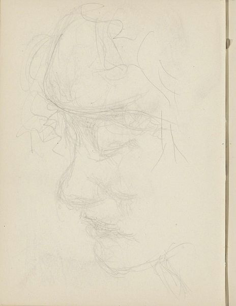 Jozef Israëls created this drawing, "Koppen van een vrouw en een figuur," with a delicate hand using graphite on paper. The composition features two studies, a woman's head in profile on the left and another form on the right, each rendered with a network of light, exploratory lines. The subtle use of line and shading constructs an interplay between presence and absence, where the forms seem to emerge from the blankness of the page. Israëls’ approach to line reflects a concern with structure and form. This interest in form over representation shifts the focus to the very act of seeing and understanding the world through its basic components. The image invites us to consider how the artist uses line to capture not just the appearance of his subjects but also their essence. The drawing embodies a philosophical reflection on art’s capacity to reveal rather than merely replicate. It encourages us to appreciate the beauty and complexity of simple marks.