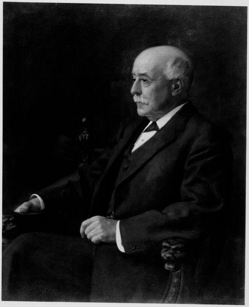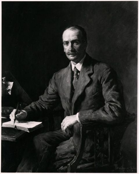 Editor: So, here we have Alphonse Jongers' portrait of Isidor Straus. It has this wonderfully somber mood. How do you interpret the subject's almost weary expression? Curator: Weary, perhaps, but also wise, wouldn't you say? Look at the way Jongers captures the light in his eyes, reflecting a life fully lived, marked by both success and, undoubtedly, its share of burdens. What stories do you imagine are etched in those lines around his mouth? Editor: That's a beautiful way to put it. I hadn't considered the light in his eyes as conveying wisdom. It really makes me wonder about his life. Curator: Exactly! Art, at its best, is an invitation to ponder, to question, to connect with the human experience across time. It certainly got me thinking about my legacy.