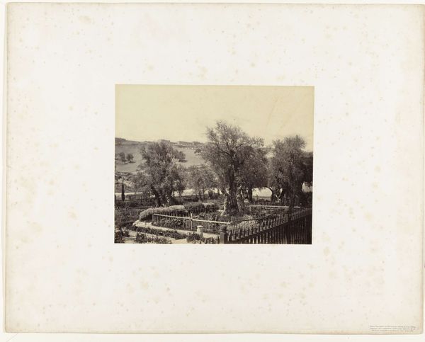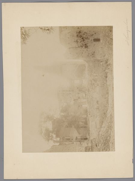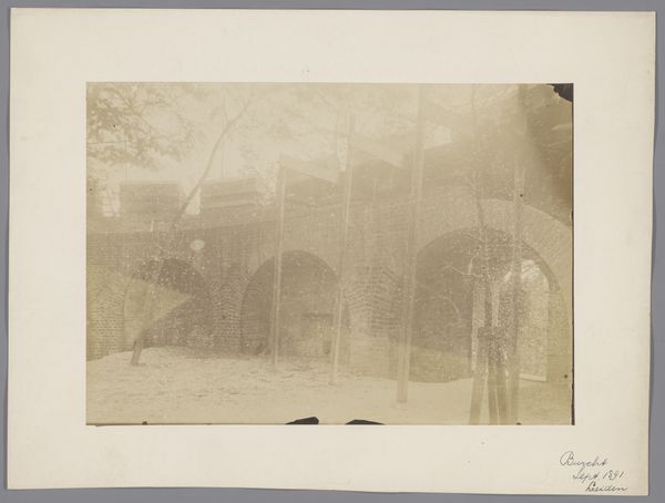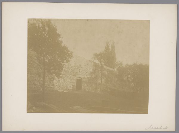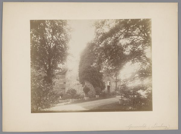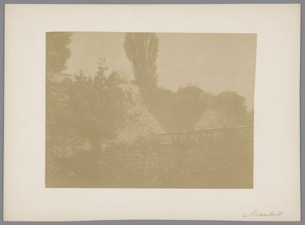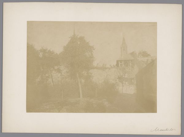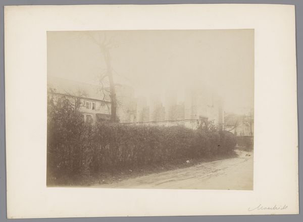 This photograph, taken by an anonymous photographer from Monumentenzorg, captures a view of the old wall in the garden of the Sisters under the Arches in Maastricht. Notice how the sepia tone unifies the composition, creating a subdued, almost dreamlike atmosphere. The structure of the image is defined by layers; the foreground is dominated by an open space, leading the eye towards a dense, overgrown wall in the background. The wall, shrouded in foliage, acts as a barrier, yet the garden's soft light and blurred details evoke tranquility. Consider how the photographer has used light and shadow to obscure and reveal the architectural details, hinting at hidden spaces and histories. This play of concealment suggests that what we see is only a fragment of a larger, perhaps inaccessible, narrative. The photograph invites us to contemplate the relationship between nature and architecture, memory and the present. Ultimately, the image functions as a meditation on time, revealing how the garden and its structures have evolved. It reminds us that the visual elements we observe are culturally coded.