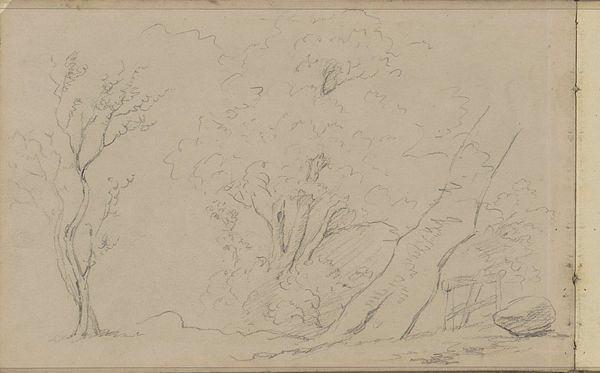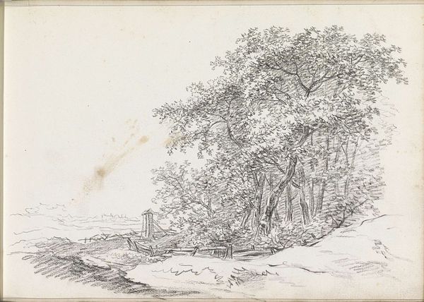 Willem Cornelis Rip composed "Beek in een berglandschap" using graphite on paper. Notice how the artist crafts a somber scene through the deliberate arrangement of forms and the absence of vibrant color. The stark lines of the solitary tree, bent by unseen winds, command the foreground. Its branches reach across the landscape and appear to defy the natural order, injecting a sense of melancholy. The stream, rendered with simple strokes, flows around the stoic rocks, leading the eye into the depths of the composition. In the background, the muted mountains and softly sketched trees contribute to the overall atmosphere of quiet desolation. Rip’s careful attention to form and line work invites us to contemplate themes of nature's force and the solitary struggle of existence. The drawing becomes more than a landscape; it is a meditation on the elemental conditions that shape our world.