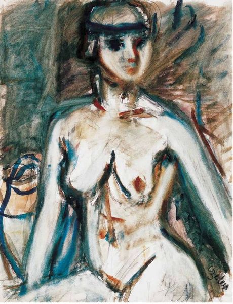 Max Gubler made this nude, probably in Switzerland, and definitely with oil paint. Look at how he’s wrestled with the paint, pushing and pulling it to conjure a figure from a messy dance of color and line. It’s all about the process, isn’t it? See that slash of bright red across the chest? It's so raw, so immediate. It’s like Gubler is saying, "Here's the heart, the life force, exposed and vulnerable." And the way he lets the strokes breathe, so you can practically feel the give and take, the back and forth. The body is a kind of battleground of colour, a raw, exciting space where nothing is certain. Gubler reminds me of Soutine, with that same urgency and passion. But in the end, it is the openness, the embrace of uncertainty, that makes art so compelling. It is a way of seeing, thinking, and feeling that welcomes ambiguity and multiple interpretations.