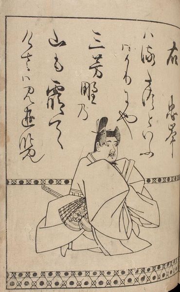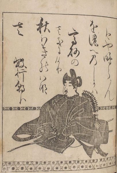 Curator: This is a print by Torii Kiyomitsu, who lived from 1735 to 1785. It depicts the actor Segawa Kikunojo playing the role of Roko. Editor: The delicate lines give it such a wistful, almost ethereal quality, like a memory fading at the edges. Curator: Indeed. Notice how the artist used a single, unbroken line to create the figure's outline, emphasizing the actor's graceful pose and the flow of the kimono. Editor: The floral patterns on the kimono are so intricate. It's like a garden is blooming across the fabric. And then there's the text – beautiful calligraphy that feels like whispers. Curator: The text is an integral part of the composition. It gives context to the image while also adding to its visual appeal. Kiyomitsu expertly balanced the figure with the calligraphic elements. Editor: It's as if the words are floating around the actor, telling her story while she stands there, poised and elegant. A beautiful piece. Curator: Yes, it's a delicate reminder of the enduring power of art to capture a moment, an emotion, a fleeting gesture.