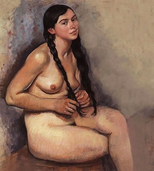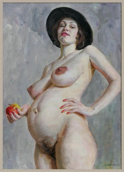 Viktor Lyapkalo created this painting, titled 'Marina', with oil paints. The choice of oil paint is significant, as it allows for a slow, deliberate process, where layers of color and texture can be built up over time. Look closely, and you'll notice how Lyapkalo has used broad, expressive brushstrokes to capture the model's form. The materiality of the paint itself – its viscosity and sheen – adds to the sensuality of the image. You can almost feel the weight and volume of her body. The making process here speaks to the history of fine art, and the skilled tradition of representational painting. However, by emphasizing the physical presence of the model, Lyapkalo's approach also challenges traditional ideals of beauty and the male gaze. It's through this lens of material and making that we can fully appreciate the social and cultural significance of 'Marina'.